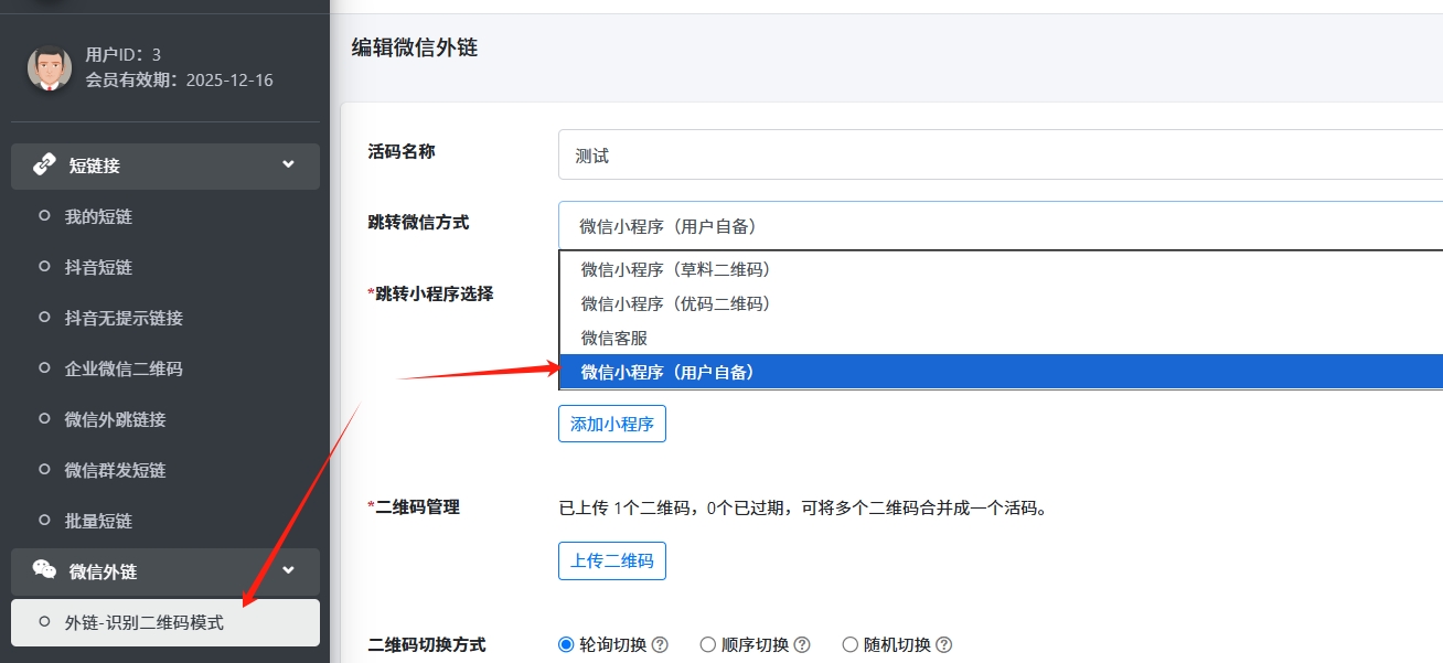 自有小程序模式微信外链,点击此处查看如何对接自有小程序