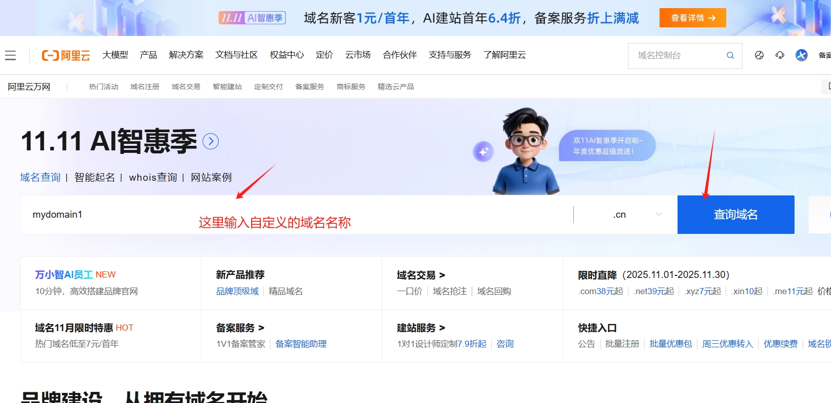 一、准备自己的域名(已经有域名请直接到第二步)