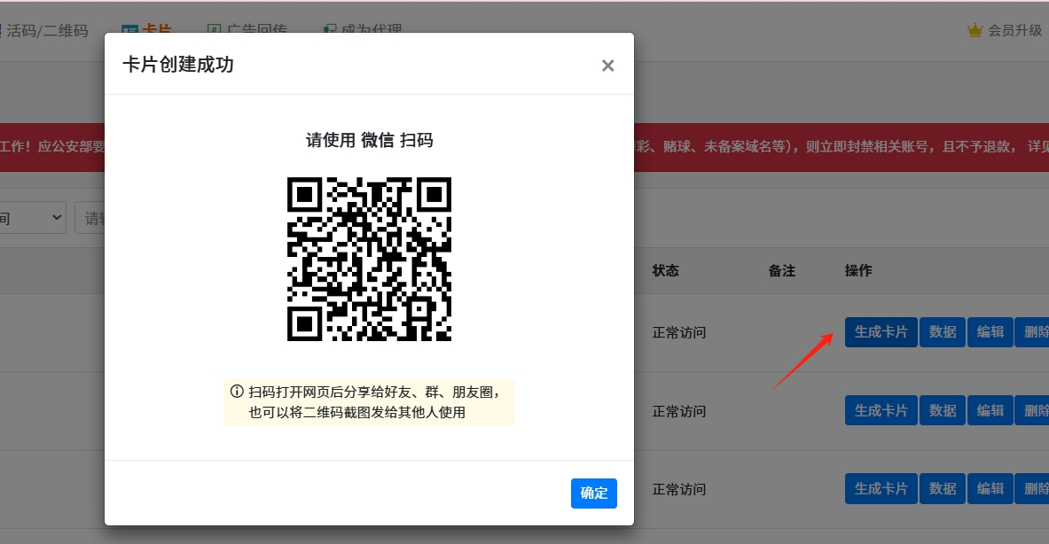 第三步:点击【生成卡片】,然后使用微信扫码分享给好友或者群